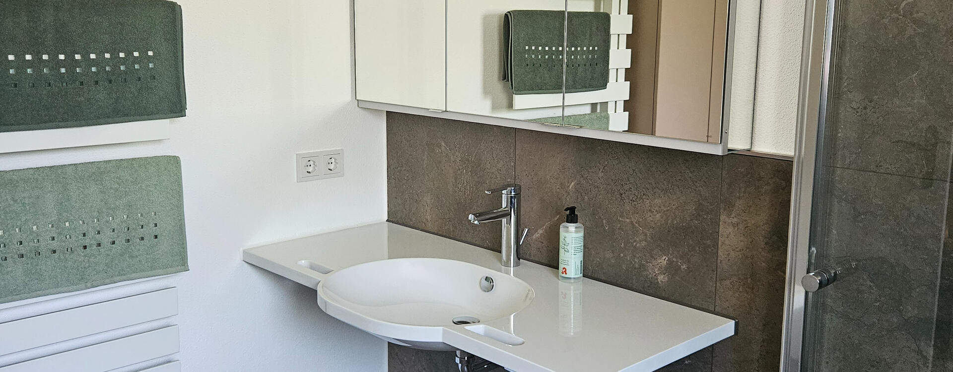 Für unseren Kunden haben wir einen barrierefreien und altersgerechten Badumbau realisiert, der sowohl Funktionalität als auch Komfort bietet. Das neue Bad ist mit einem unterfahrbaren Waschtisch ausgestattet, der eine einfache Nutzung im Sitzen ermöglicht. Das WC verfügt über praktische Haltegriffe, die Sicherheit und Stabilität gewährleisten. Die Dusche ist mit einem Klappsitz versehen und kann bei Bedarf vollständig wegpendelt werden, um den Einstieg zu erleichtern.